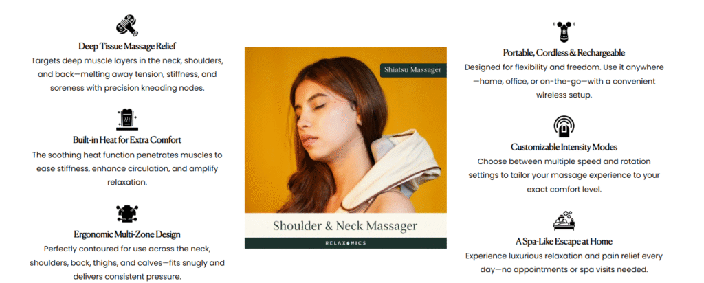 An Electric Heat Shiatsu Massager is a portable device designed to simulate the kneading and rolling motions of a professional massage therapist. It typically features rotating massage nodes, heat functionality, and ergonomic designs to target specific muscle groups. The integration of heat therapy enhances blood circulation and promotes muscle relaxation.